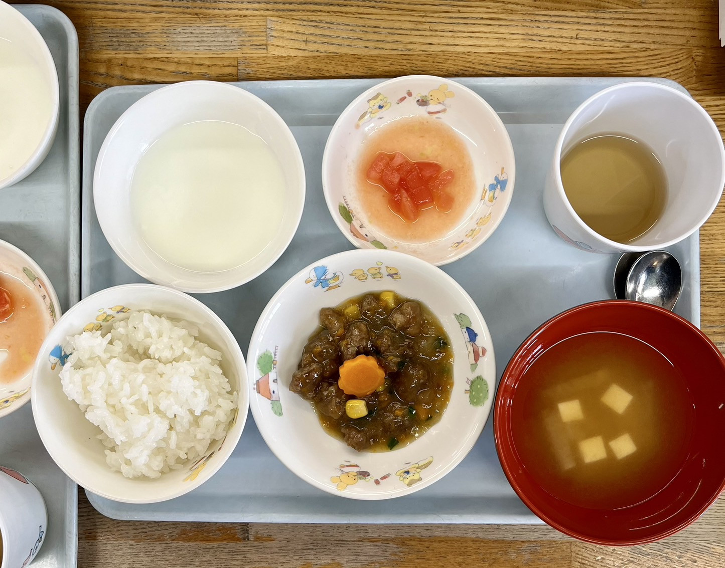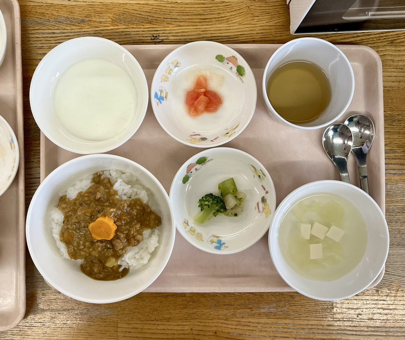 カレーライス スープ ブロッコリー トマト ヨーグルトまたは苺