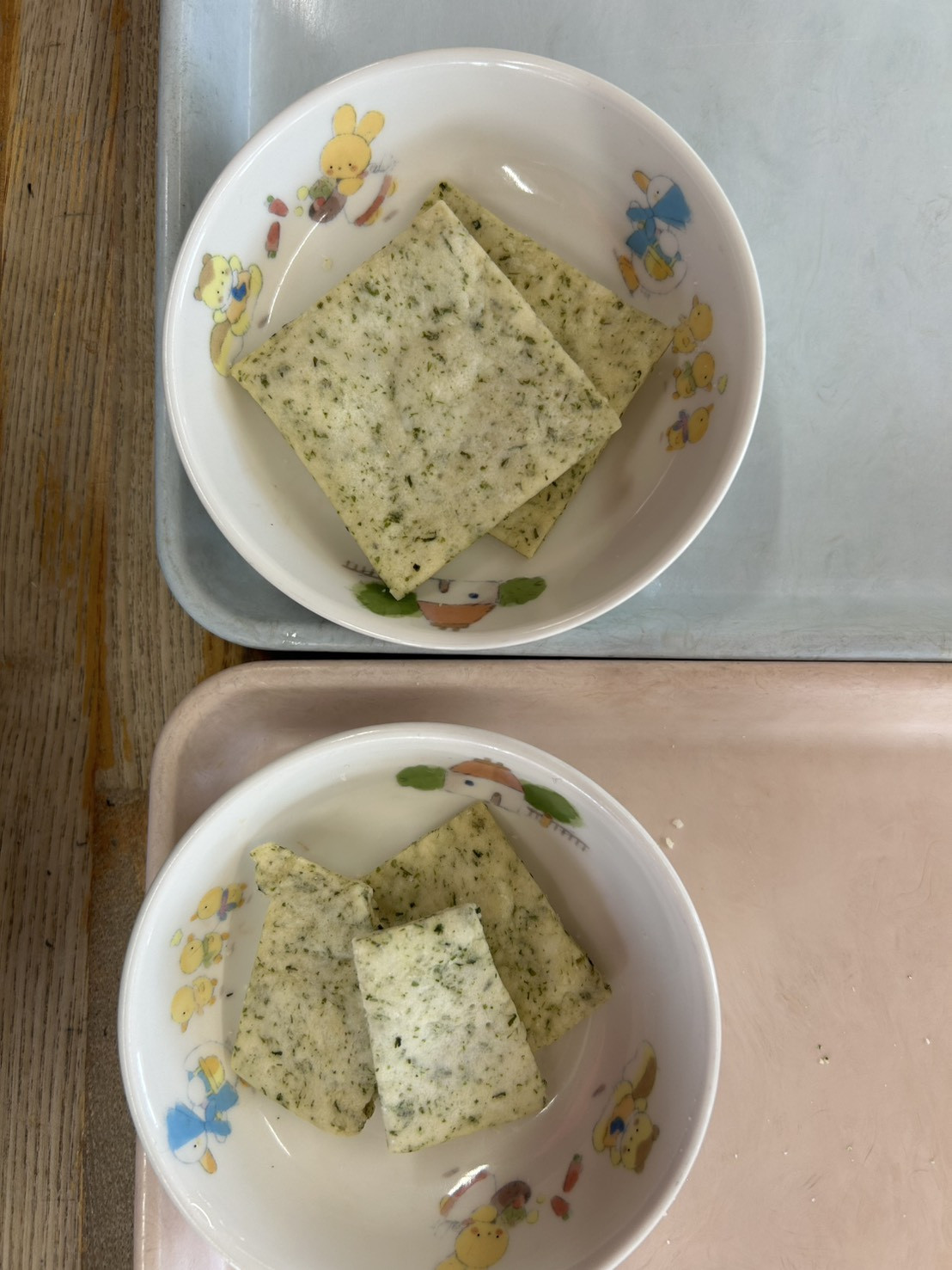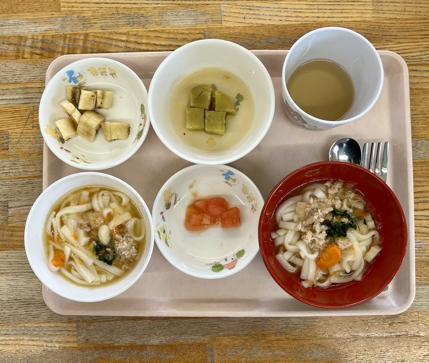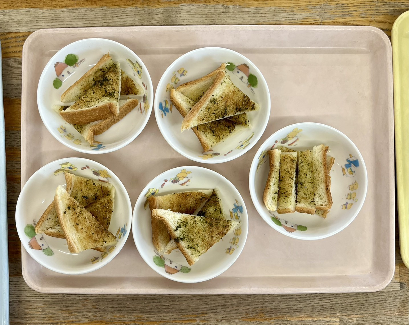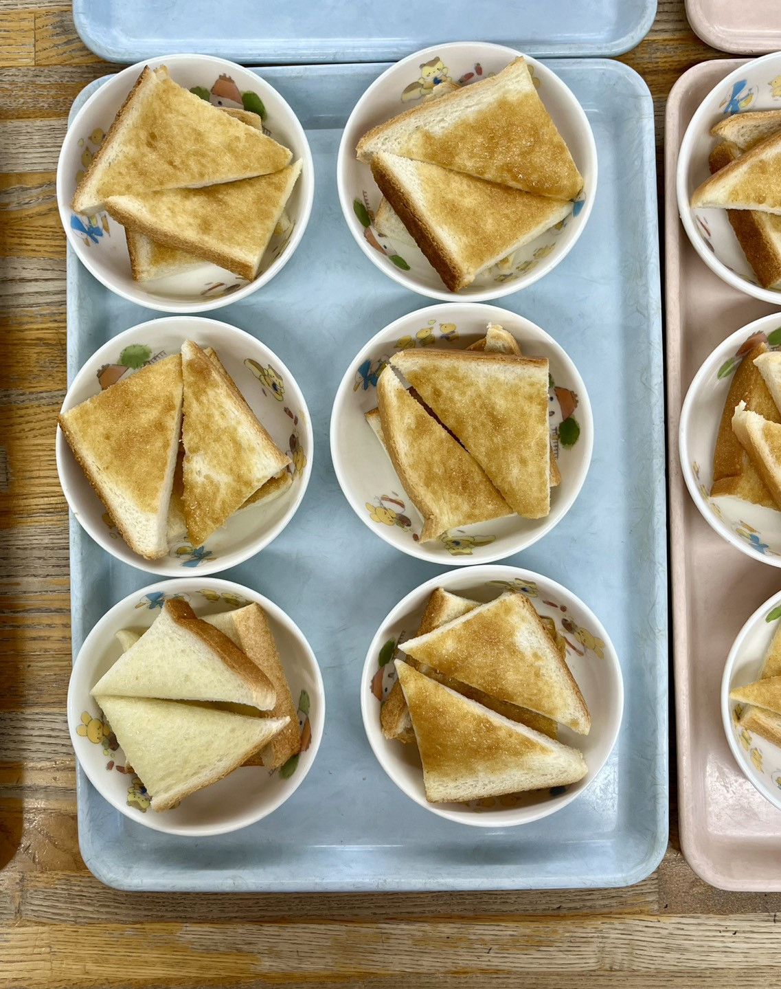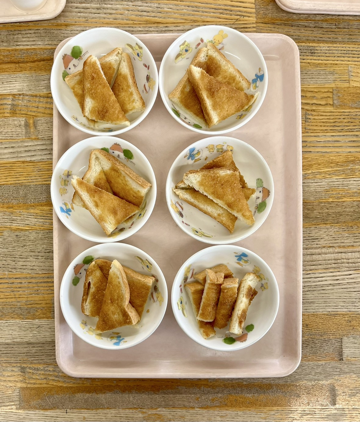 1歳児、2歳児は、噛み切りやすい三角形での提供です
