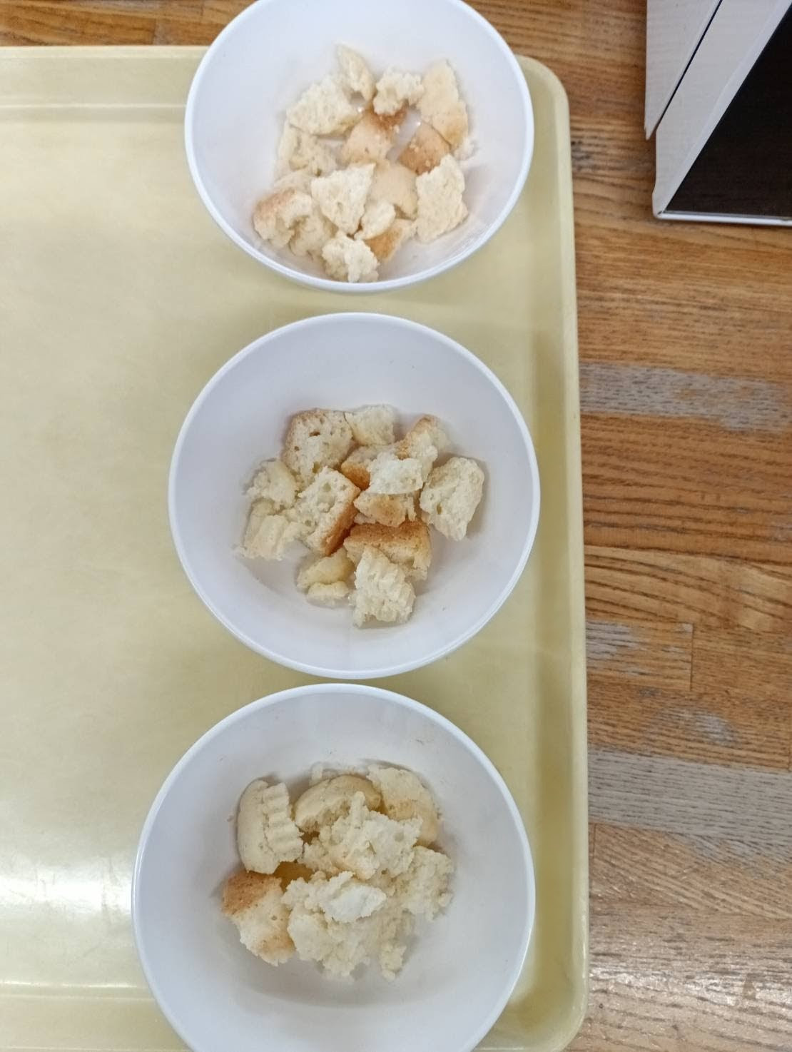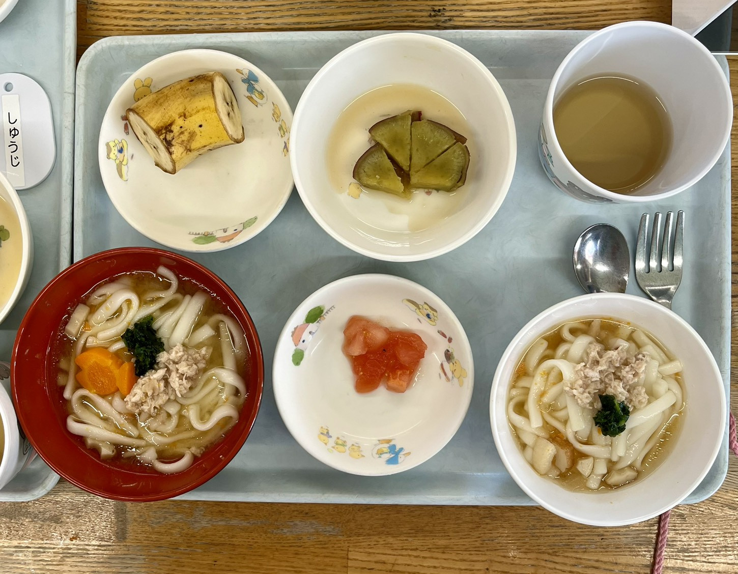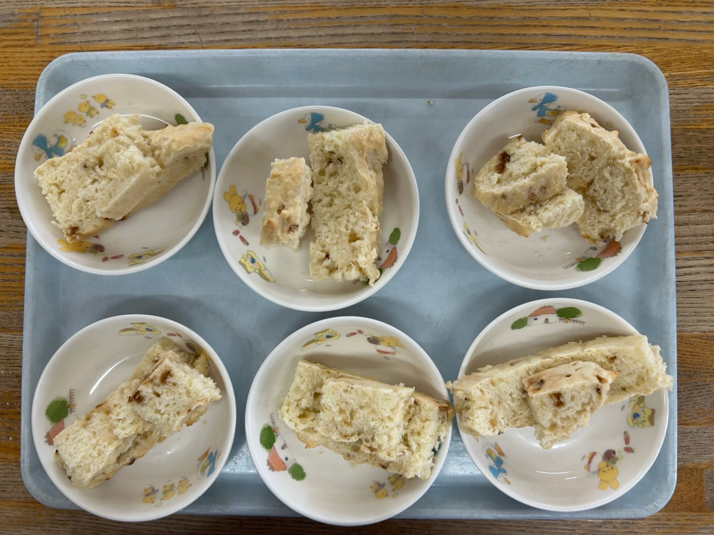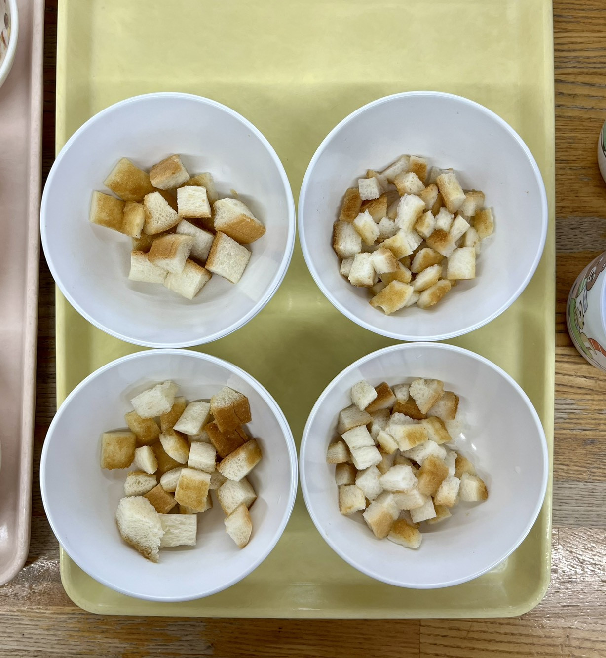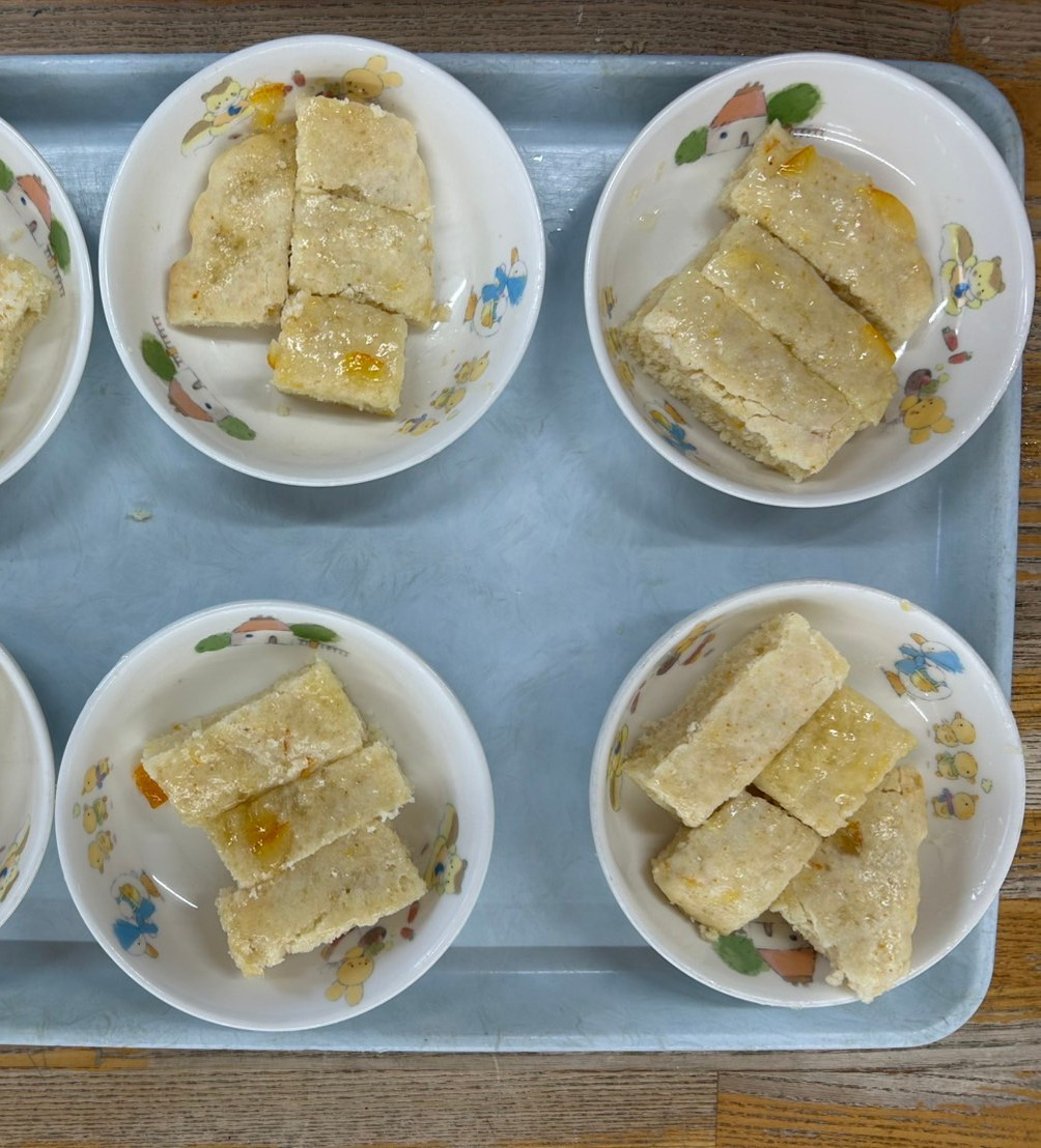 1歳児、2歳児は、噛み切りやすい三角形での提供です
