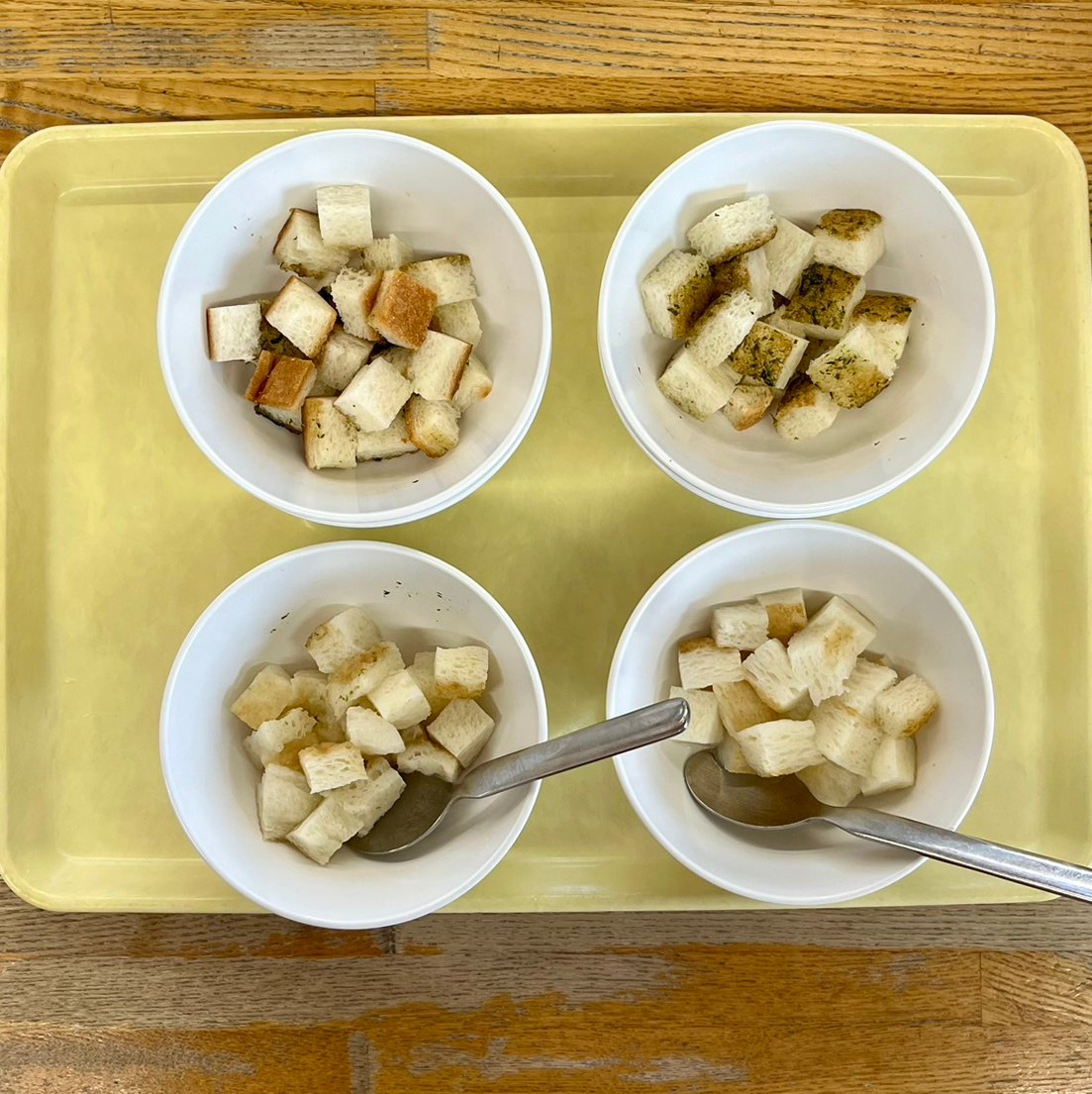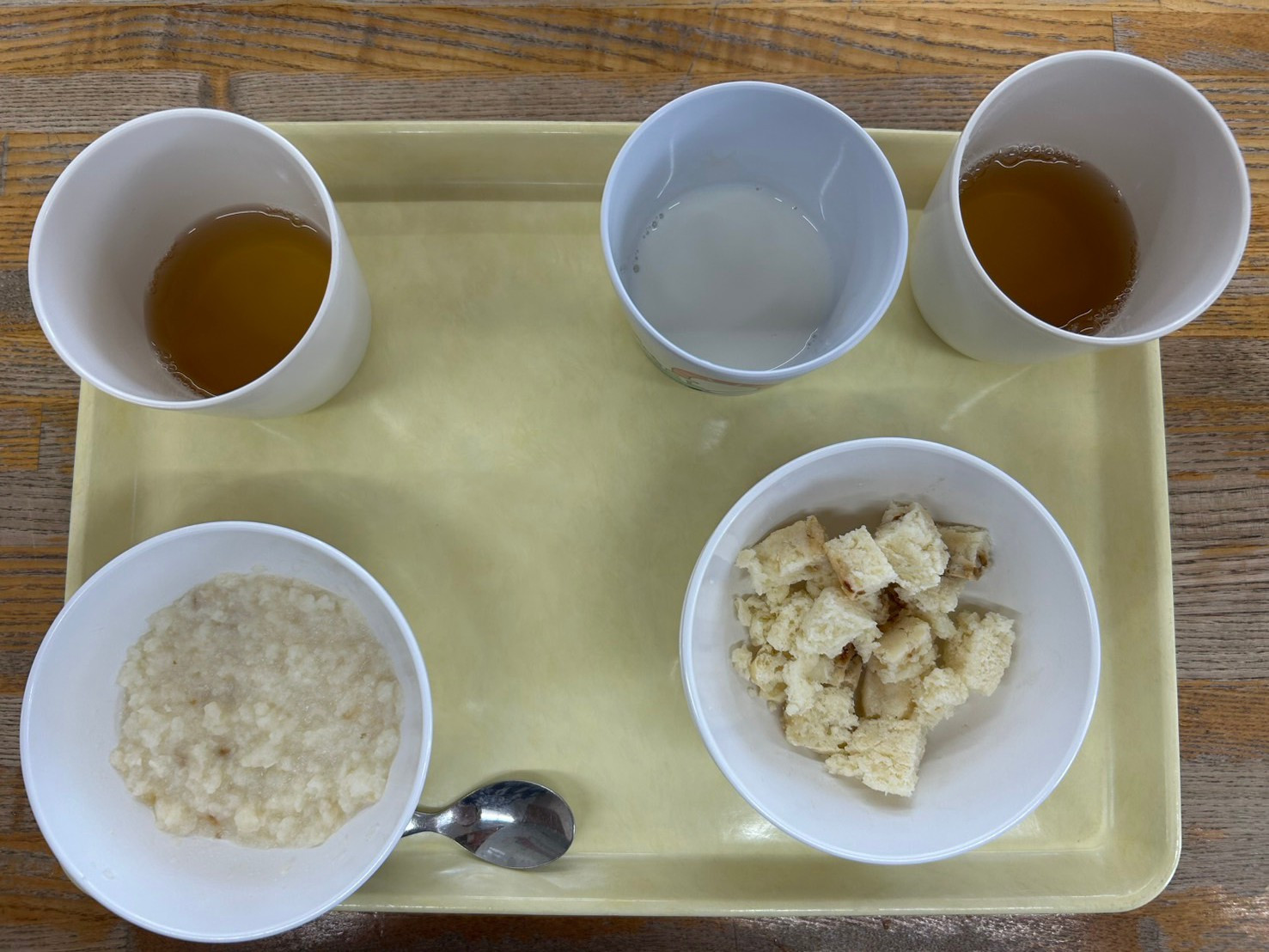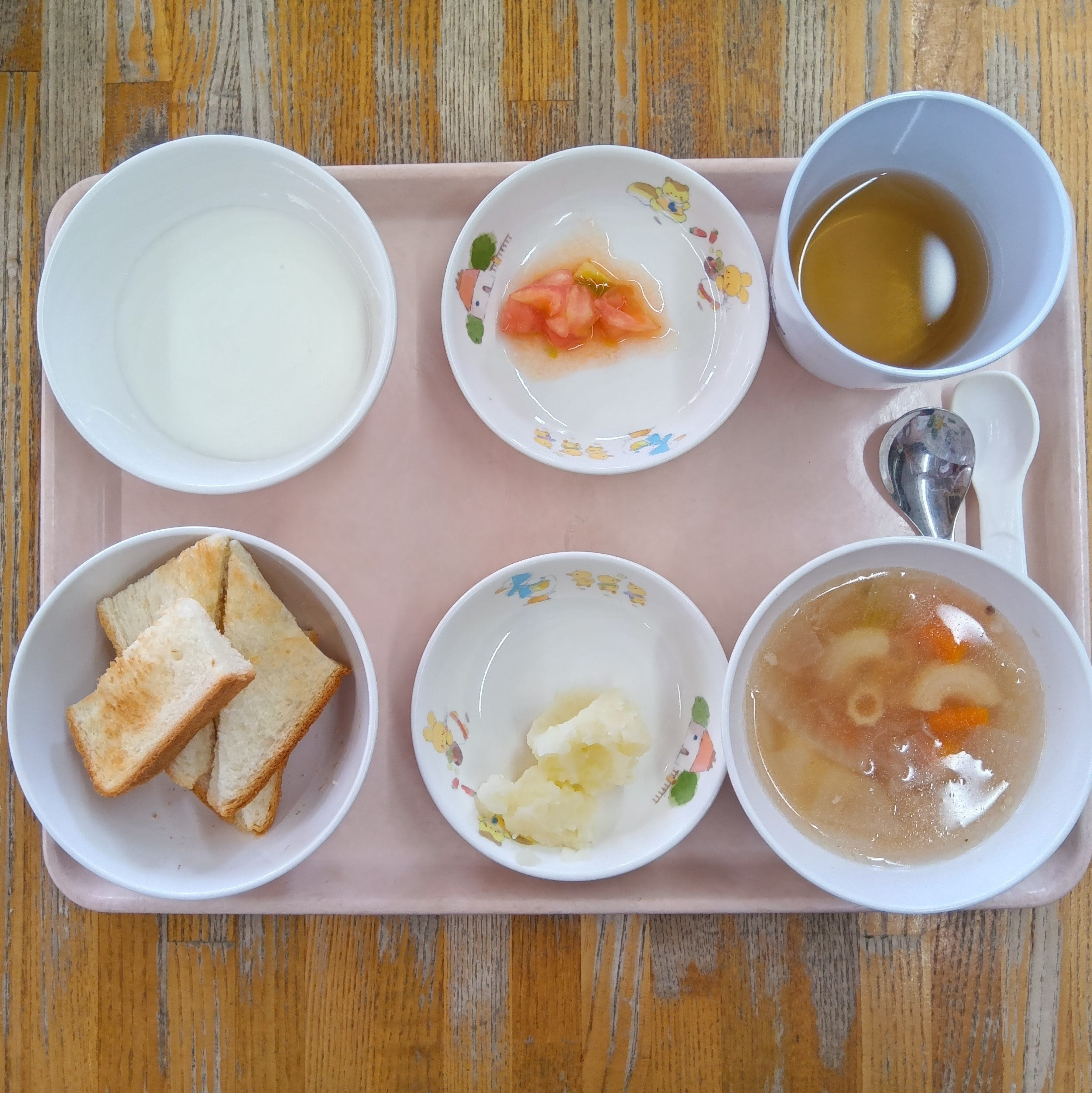 食パン ミネストローネスープ マッシュポテト トマト ヨーグルト