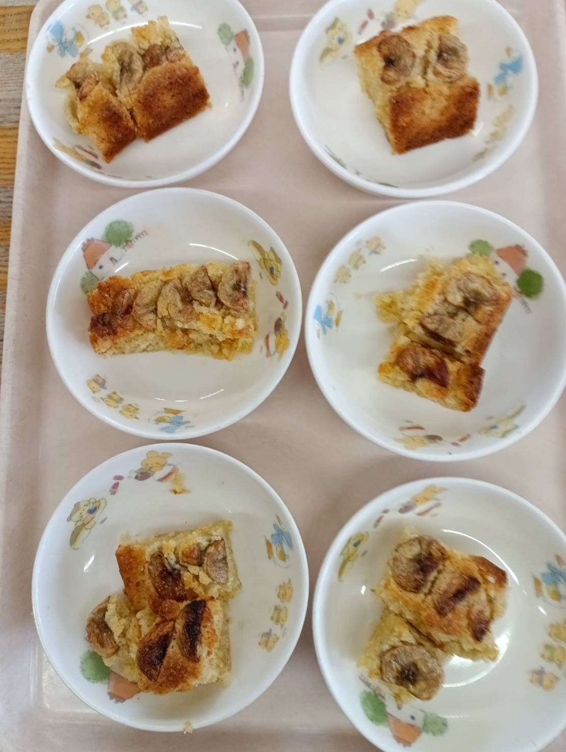 午後のおやつは《ヨーグルトバナナケーキ》です。