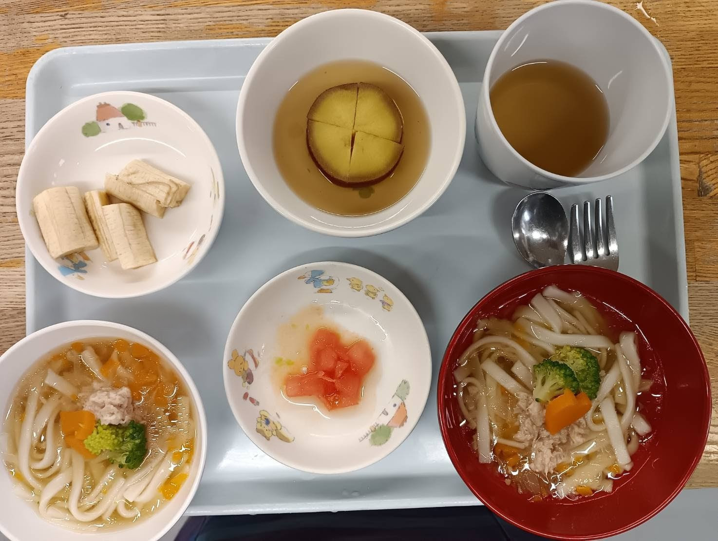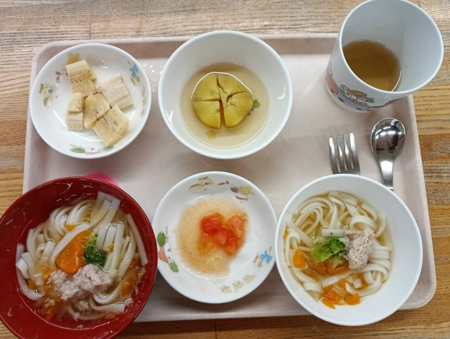 サマーうどん ブロッコリーとツナの炒め物 トマト バナナ