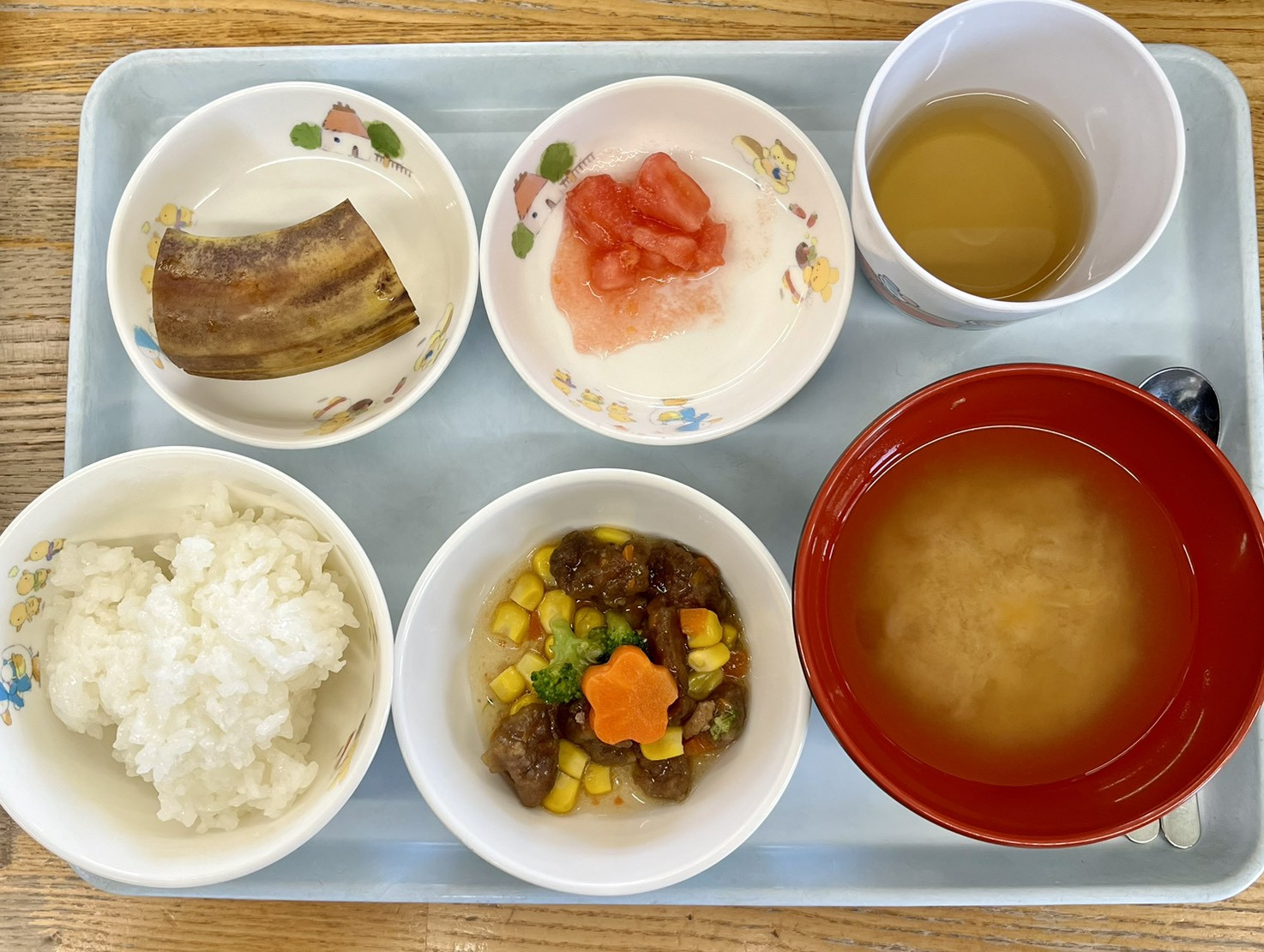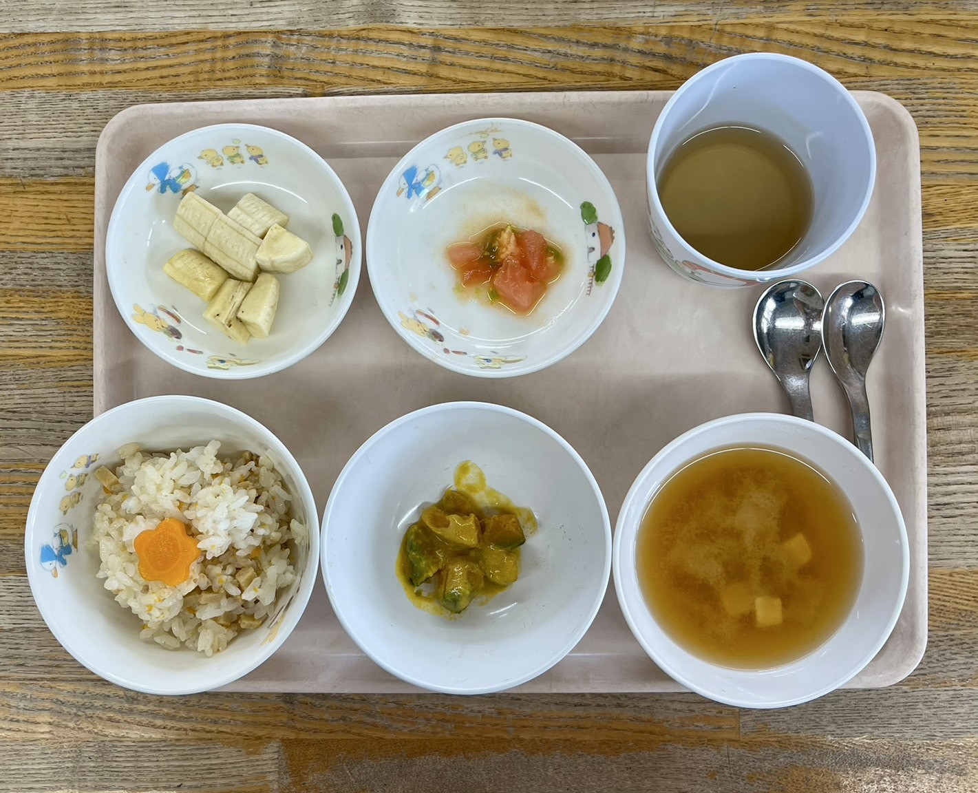 ご飯 味噌汁 鬼の金棒 人参シリシリ トマト バナナ