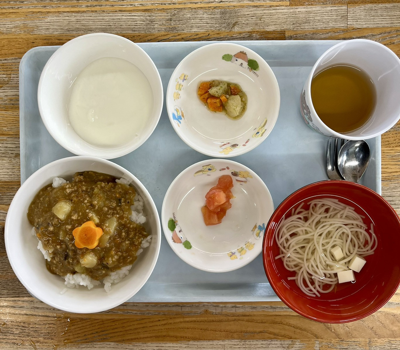 ハヤシライス 七夕スープ サラダ トマト ヨーグルト