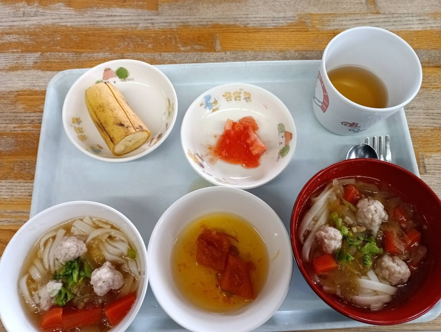 五目うどん 切り干し大根の煮物 トマト バナナ