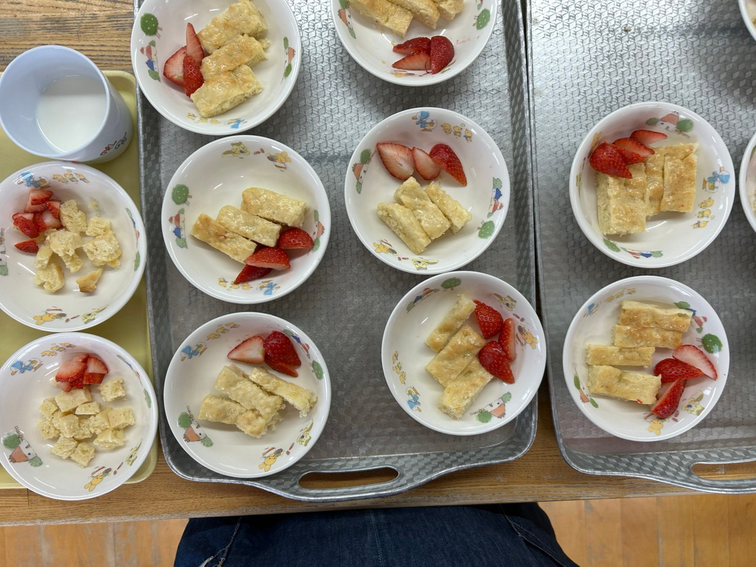 今日はひなまつりなので、デザートは苺で提供しました。みんな大好きです。