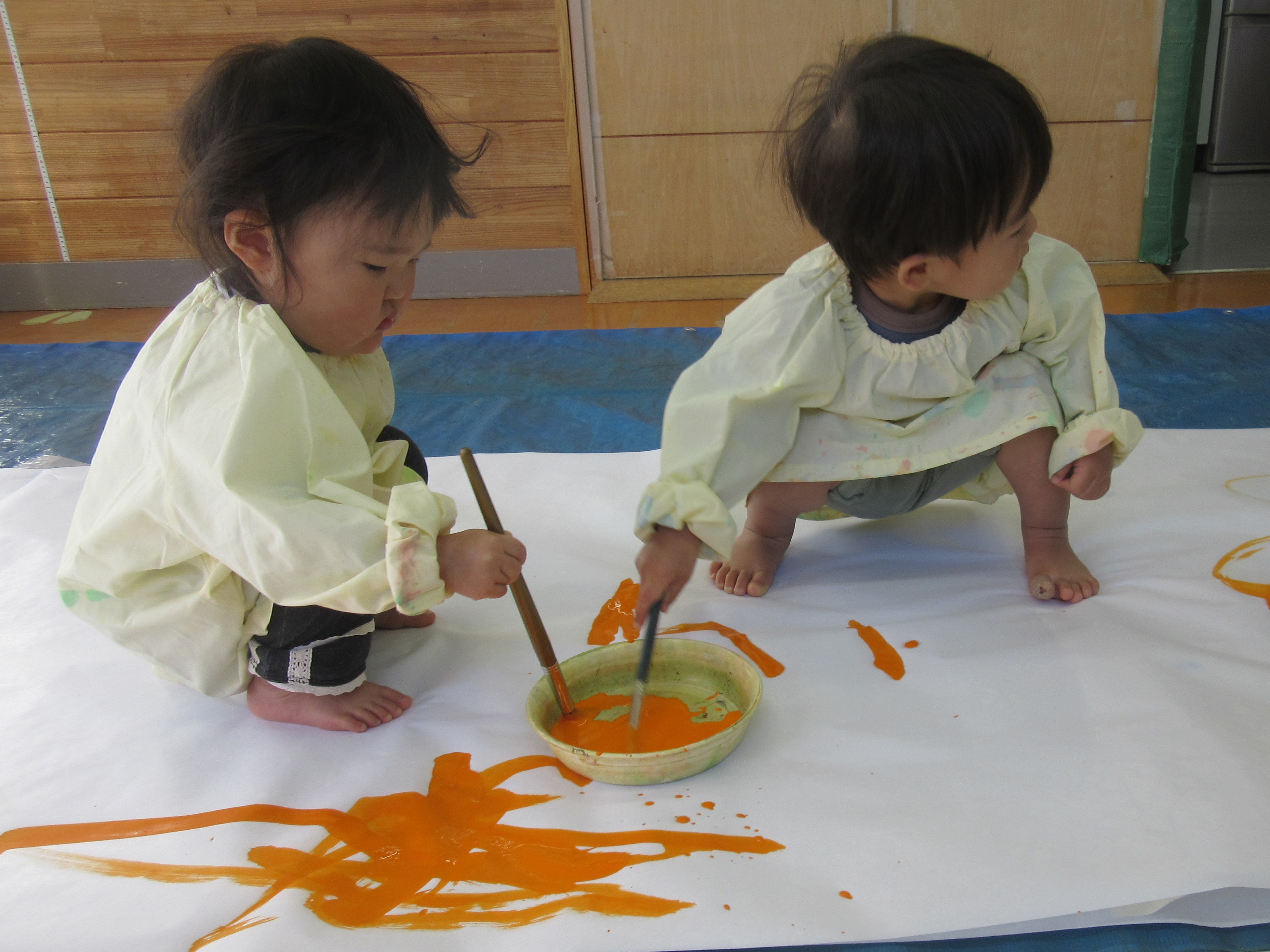 「今日はこの紙の上で絵の具を使ってあそぼう!」